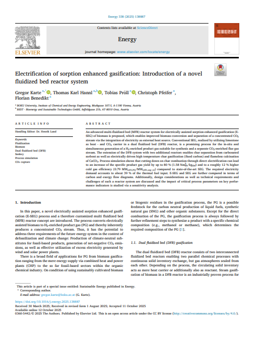 We are happy to anounce that BOKU Vienna published a paper on the “Electrification of sorption enhanced gasification: Introduction of a novel fluidized bed reactor system” in Energy.